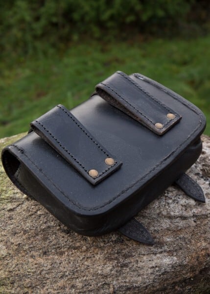 ベルトループ付きの実用的なレザー バッグ。